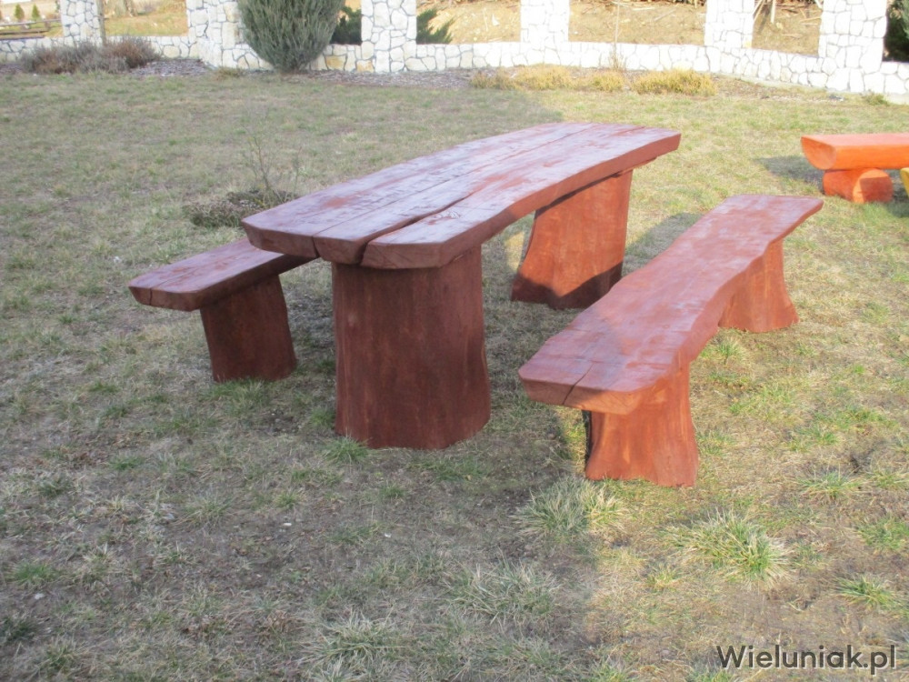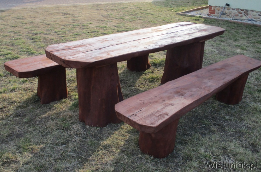 Widoczny stół w raz z 2 ławkami o wymiarach 200 x 65 cm - cena kompletu 1600,00 zł