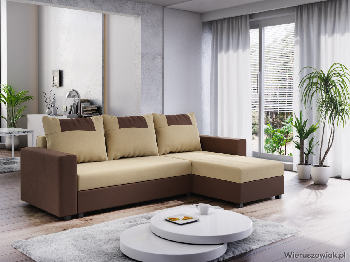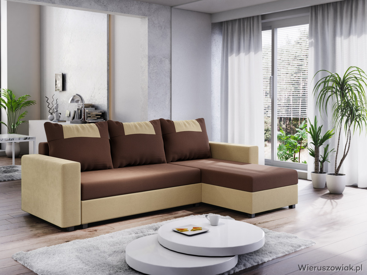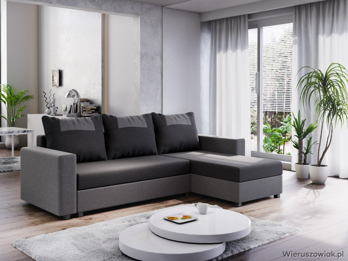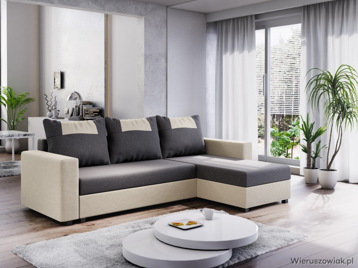 Narożnik dostępny jest w różnych kolorach i tkaninach, co pozwala na dopasowanie go do indywidualnych potrzeb i stylu wnętrza. Solidna konstrukcja oraz wysokiej jakości materiały gwarantują długotrwałe użytkowanie.