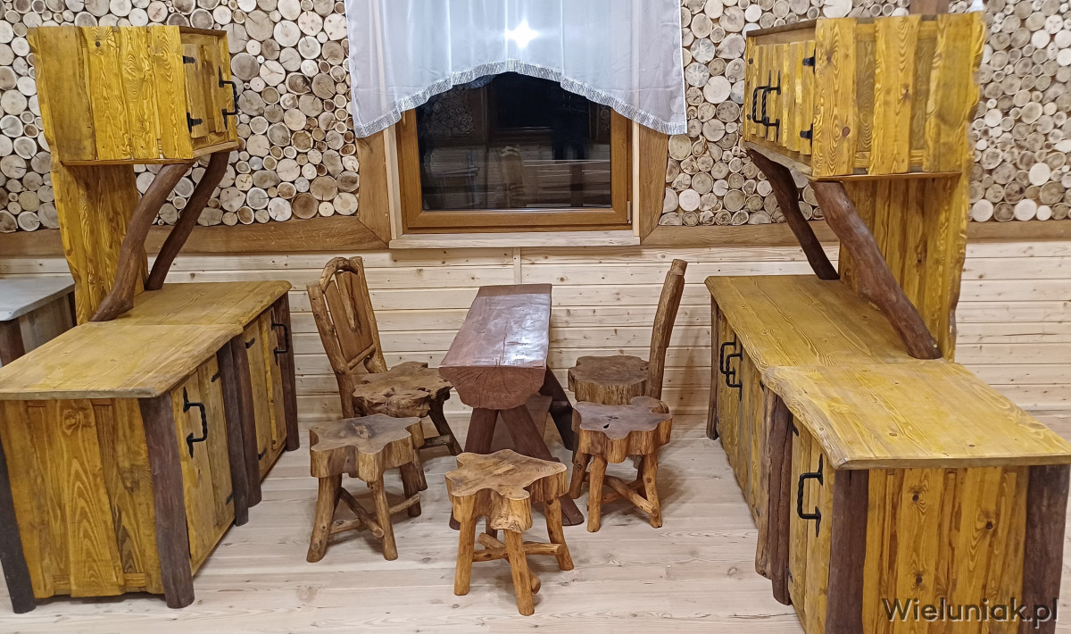 - oświetlenia; żyrandol z bali okrągłych = 3 klinkiety ,