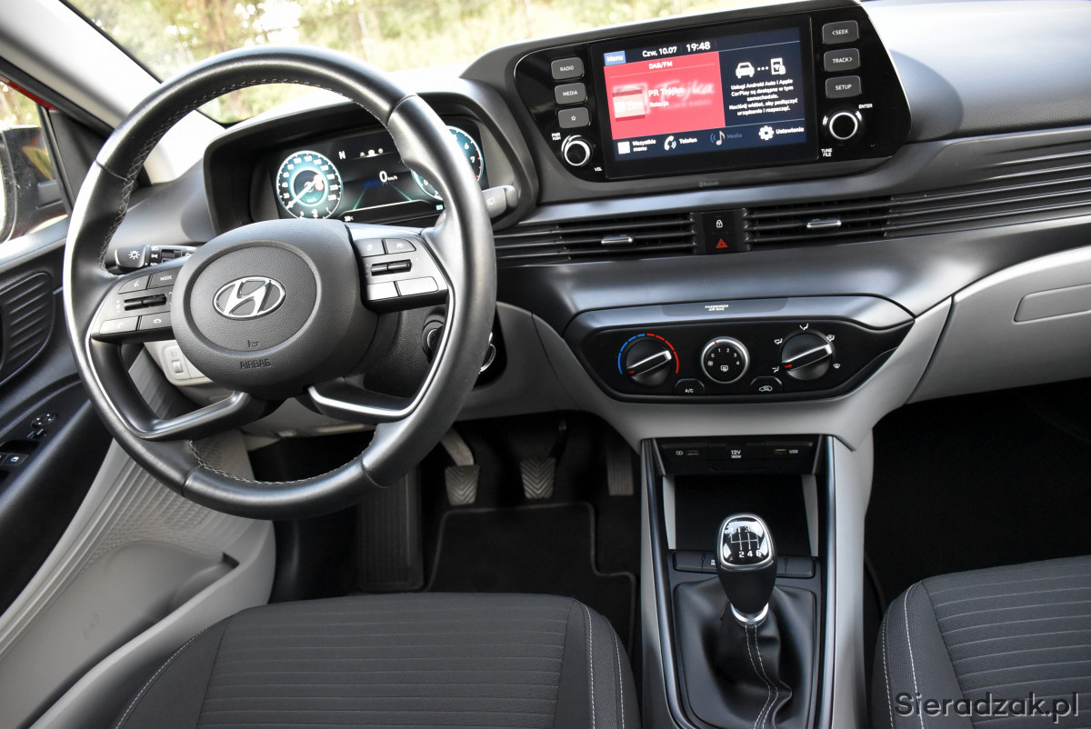 To i20 jest w wersji: Mild Hybrid 48V, czyli miękka hybryda 48 woltowa. Układ Mild Hybrid ma na celu wspomaganie pojazdu podczas ruszania oraz przyspieszenia co znacząco obniża spalanie.