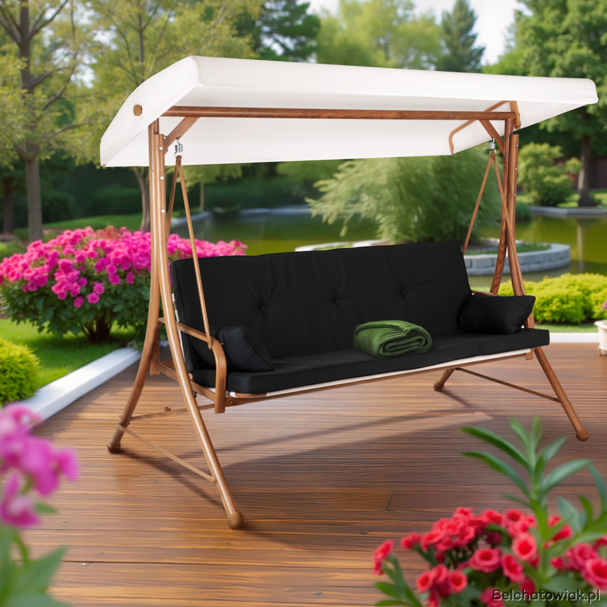 Zawsze jest coś niezwykłego w prostych, sprawdzonych rozwiązaniach, które od lat cieszą serca i dusze. Ta 3-osobowa huśtawka ogrodowa to właśnie taki mebel – miejsce, gdzie można spokojnie usiąść, pobujać się i odetchnąć od codziennego zgiełku, otoczony zielenią i śpiewem ptaków.