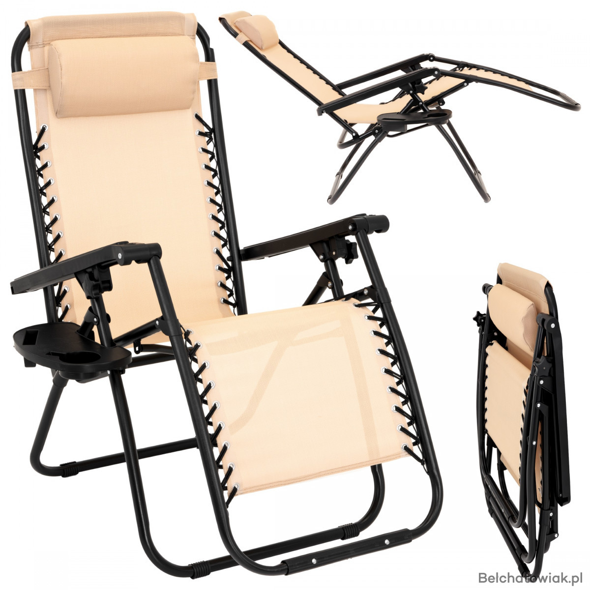 SKŁADANY LEŻAK OGRODOWY – BEŻOWY 58010 | KOWALCZYK MEBLE