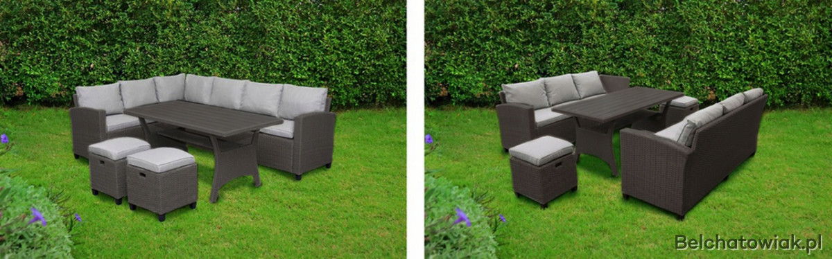 Komplet ogrodowy to stylowa i praktyczna propozycja do każdego ogrodu, tarasu lub balkonu. Wykonany z odpornego na pogodę technorattanu PE, zestaw jest łatwy w czyszczeniu, trwały i idealny do codziennego użytku na świeżym powietrzu.