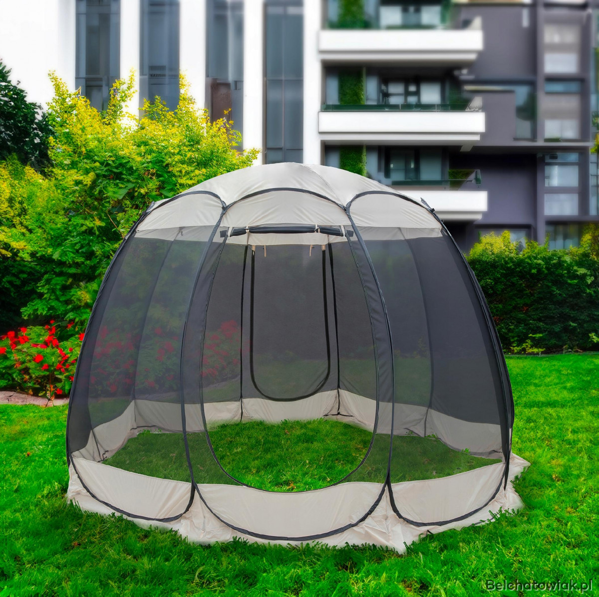 Model ten doskonale sprawdzi się podczas pikników, grilla, imprez w ogrodzie lub po prostu jako stylowa altana na taras. Dzięki wysokiej konstrukcji możesz swobodnie poruszać się wewnątrz, a transparentne i beżowe elementy nadają mu lekkości i elegancji.