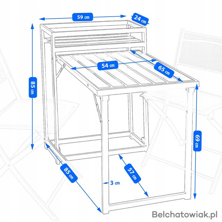 Ten zestaw mebli balkonowych łączy w sobie praktyczność i estetykę. To doskonały wybór dla osób ceniących komfort, oszczędność miejsca i nowoczesny wygląd.
