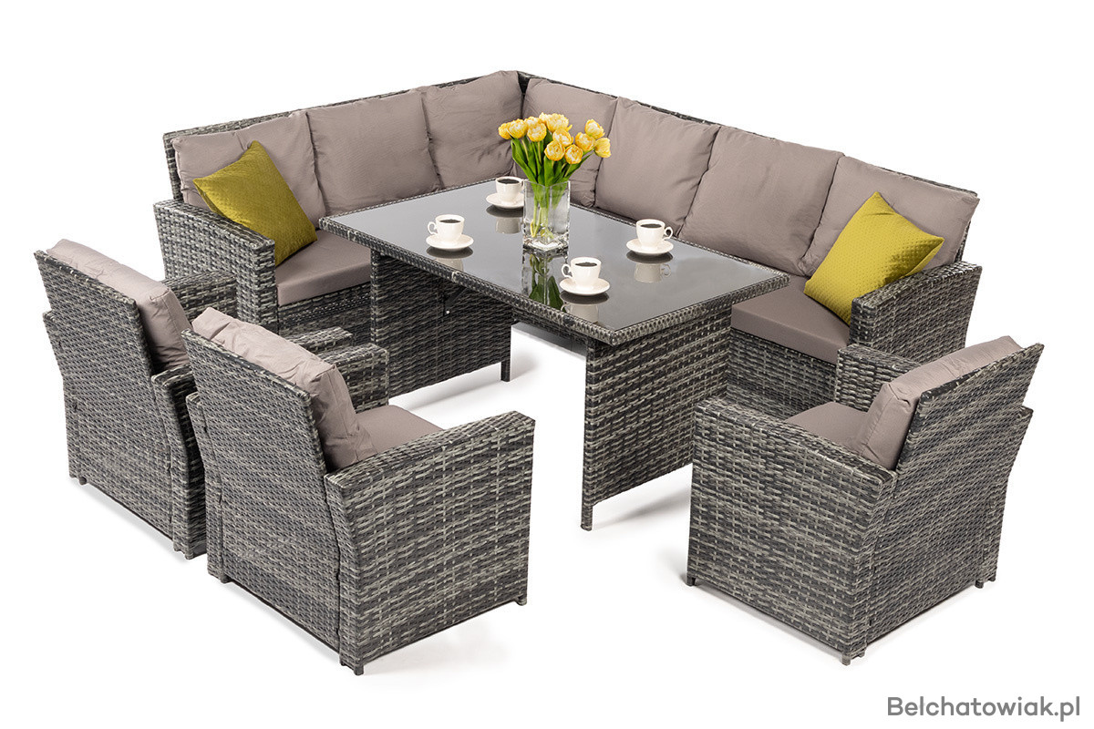 Nowoczesny Zestaw Mebli Ogrodowych TORINO z Technorattanu – 10-osobowy Szary Narożnik