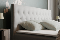 Łóżko BONO wyróżnia się delikatnym pikowaniem, które nadaje mu elegancki, luksusowy charakter. Starannie wykonane przeszycia tworzą efektowny detal dekoracyjny, podkreślający wyjątkowy styl sypialni.