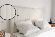 Łóżko kontynentalne SOMNUS wyróżnia się eleganckim zagłowiem, złożonym z osobno tapicerowanych, zaoblonych paneli połączonych ze sobą. To wyjątkowy detal, który harmonijnie komponuje się z różnymi aranżacjami wnętrz, dodając im klasy i charakteru.