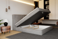 Wbudowany, pojemny schowek na pościel umożliwia wygodne przechowywanie kołder, poduszek czy koców. To rozwiązanie pozwala zachować porządek i zaoszczędzić miejsce w sypialni.