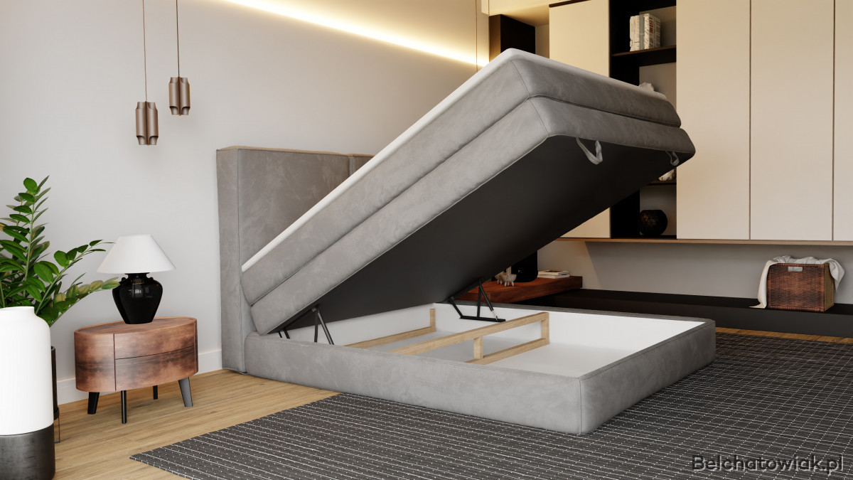 Model RUBY PLUS posiada duży pojemnik na pościel, który umożliwia przechowywanie kołder, poduszek czy koców. To praktyczne rozwiązanie pozwala utrzymać porządek w sypialni.