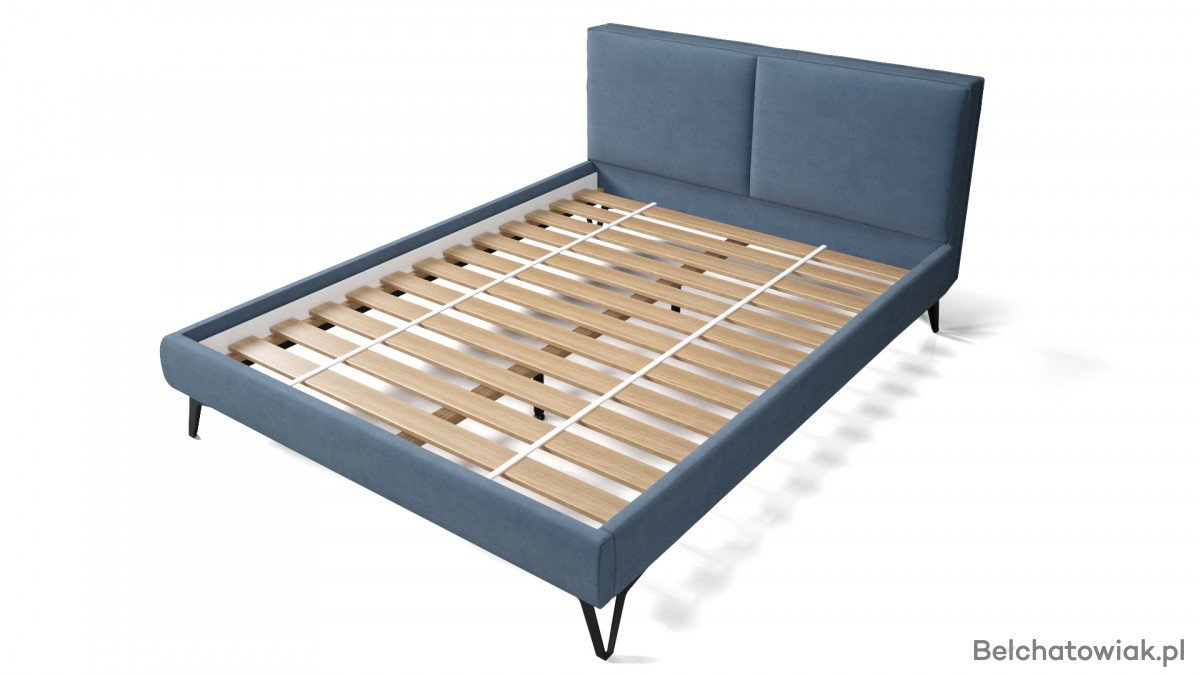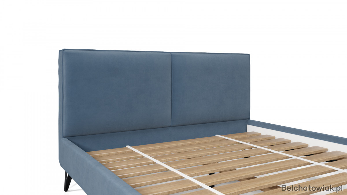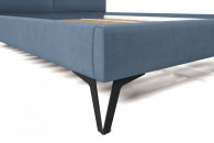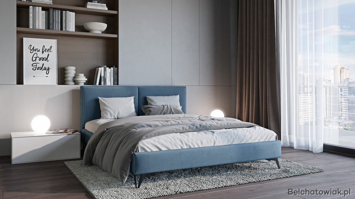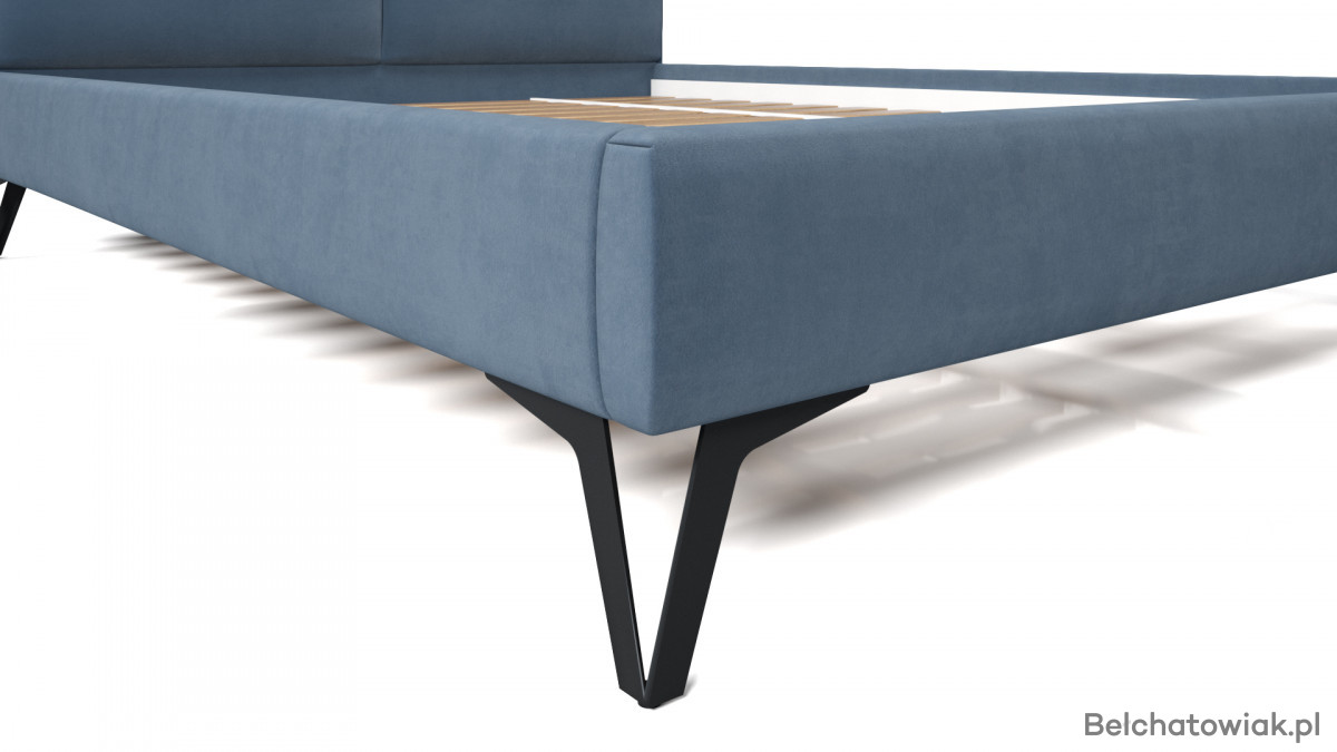 Nowoczesny charakter łóżka podkreślają wysokie, stalowe nóżki. Ich smukła forma dodaje konstrukcji lekkości i elegancji, doskonale wpisując się w aktualne trendy aranżacyjne. To detal, który nadaje całości wyjątkowego charakteru.