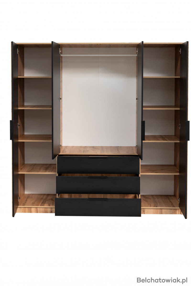 Dąb wotan korpus / Front: czarny + dąb wotan + lustro + lamele
