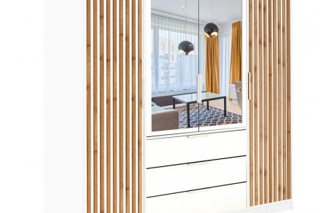 Biały korpus / Front: biały + dąb wotan + lustro + lamele