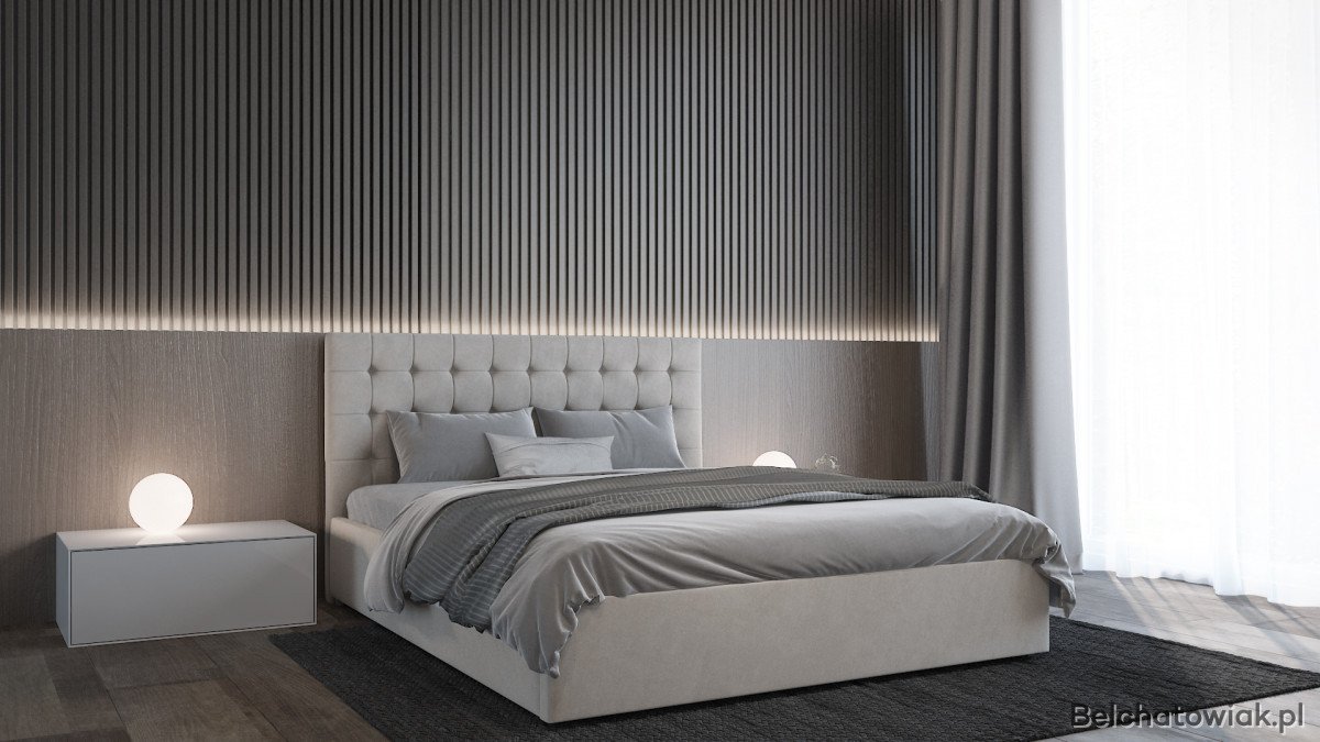 Rezygnacja z ozdobnych kamieni podkreśla wyważoną elegancję i sprawia, że łóżko doskonale komponuje się z różnymi aranżacjami wnętrz – od klasycznych po nowoczesne.